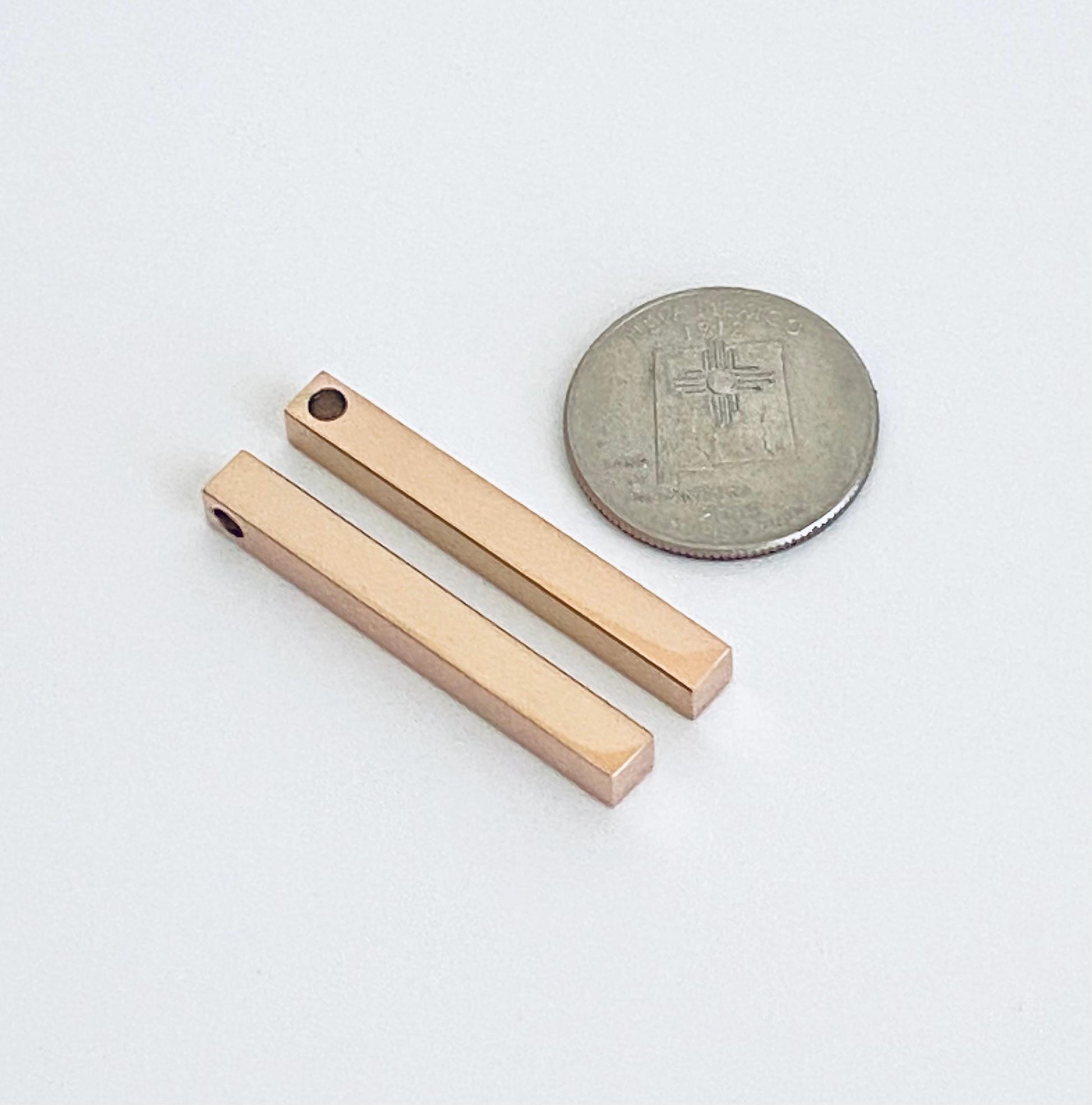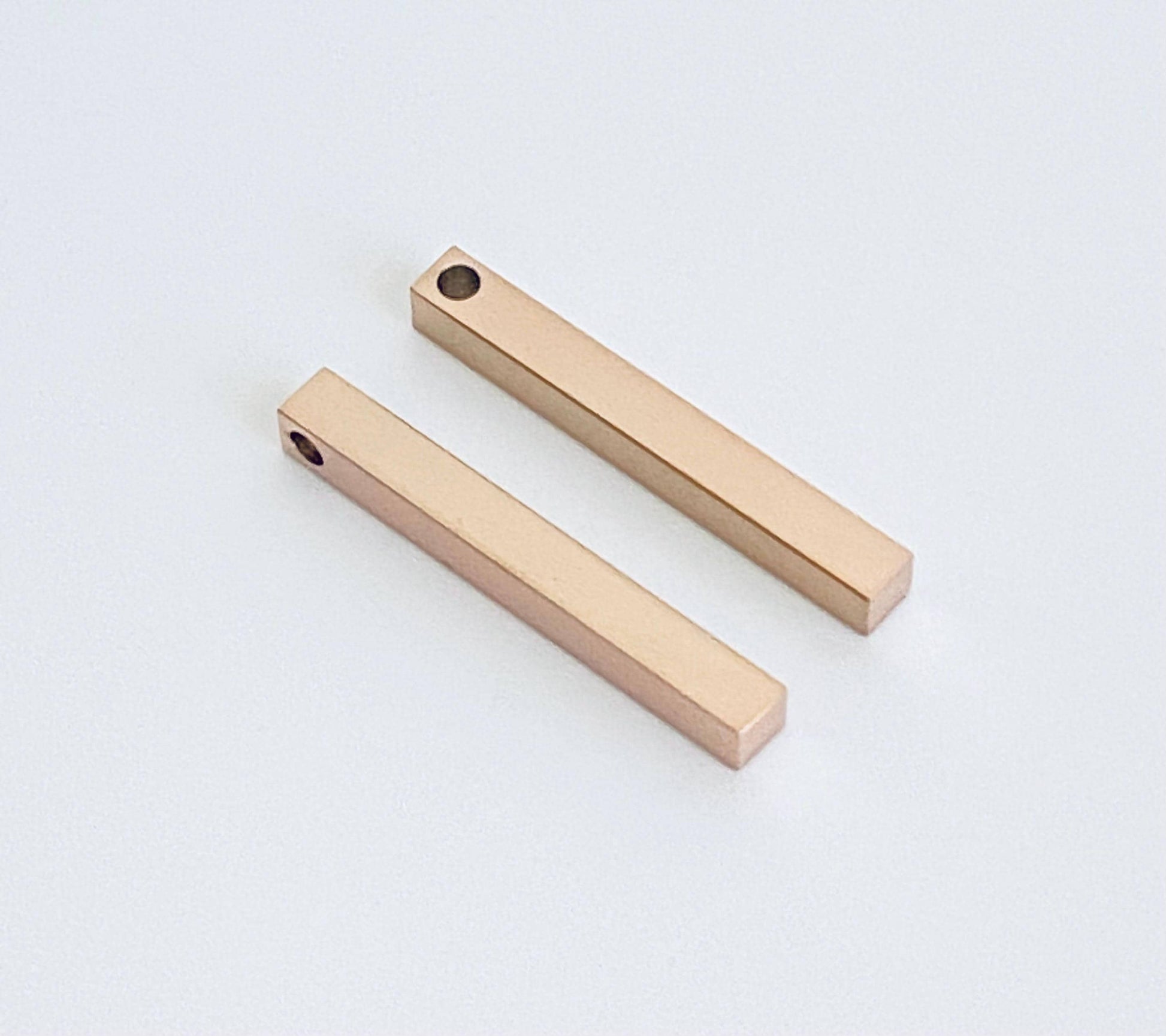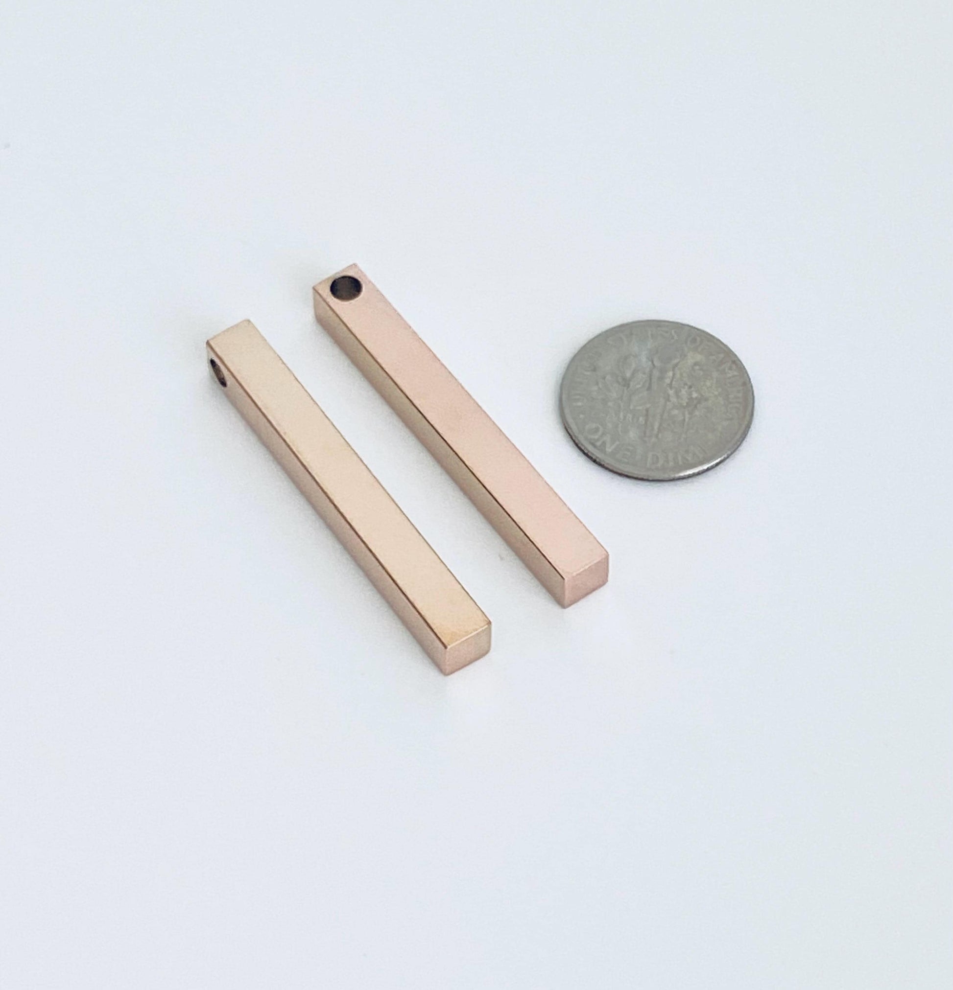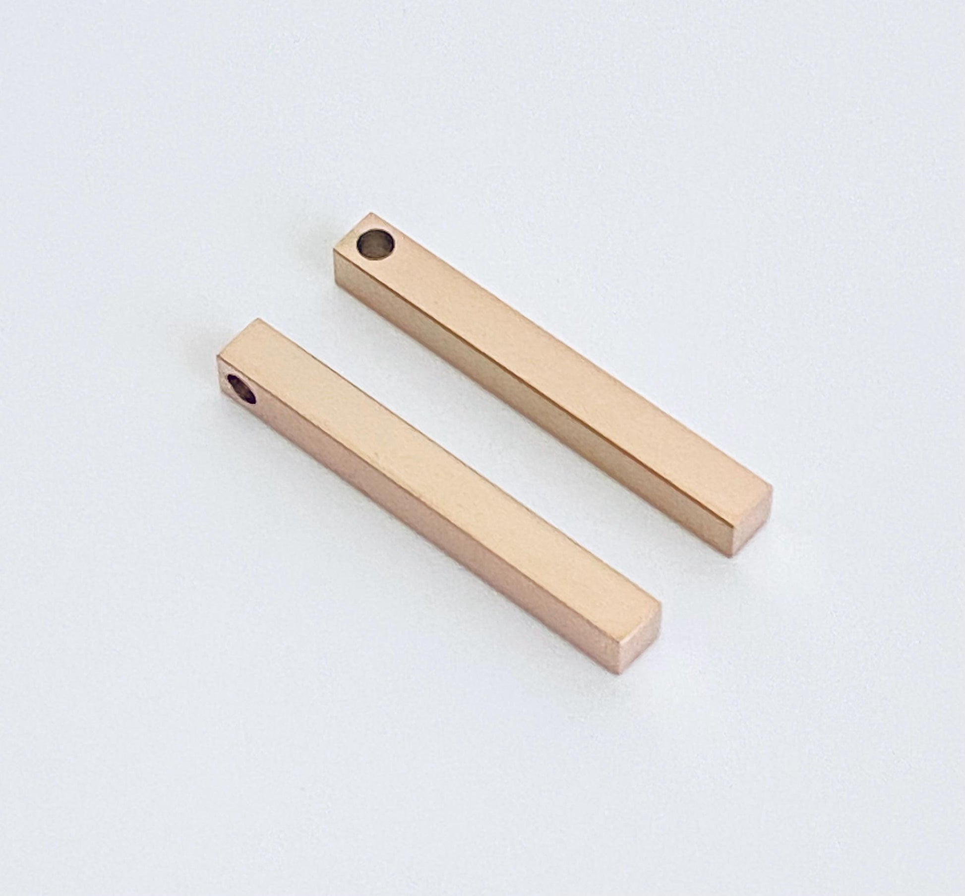 This 4-sided rose gold over stainless steel long bar blank features a sleek polished finish on all sides, making it perfect for engraving and personalized jewelry. Ideal for name bars, bar necklaces, pendants, and DIY jewelry projects, it offers durability, corrosion resistance, and an elegant rose gold look.