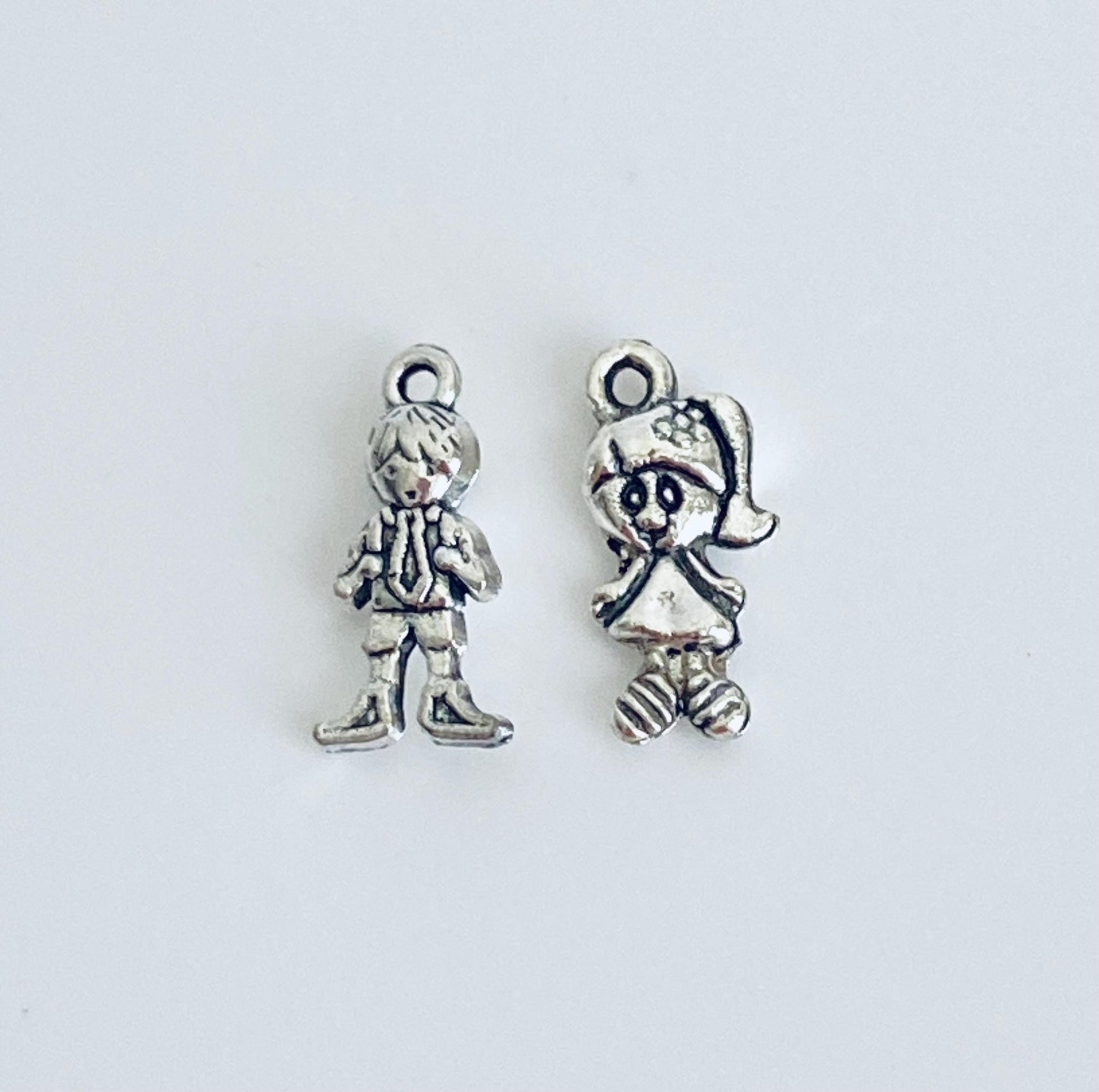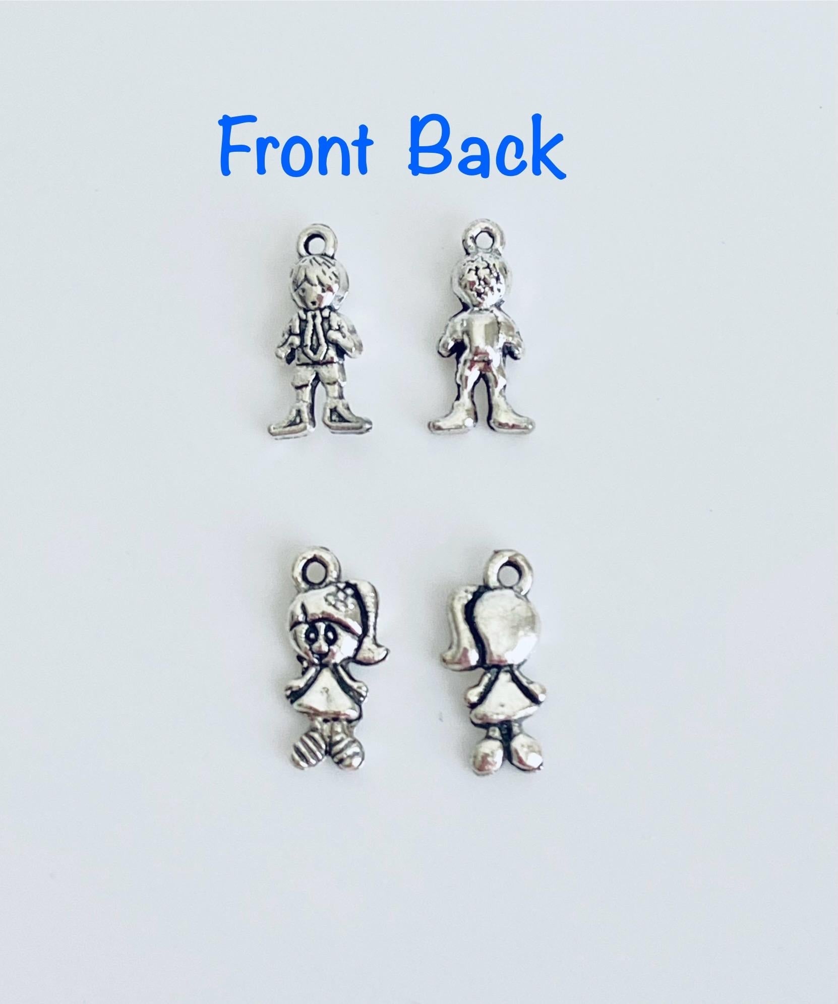 This base metal boy or girl charm is a versatile family-themed jewelry charm perfect for DIY jewelry making, charm bracelets, necklaces, earrings, keychains, zipper pulls, and craft projects. Featuring cute boy and girl figure designs, this charm is ideal for family jewelry, baby-themed accessories, motherhood jewelry, and personalized keepsakes. Perfect for bulk jewelry supplies, child charms, family pendants, and custom handmade jewelry designs.