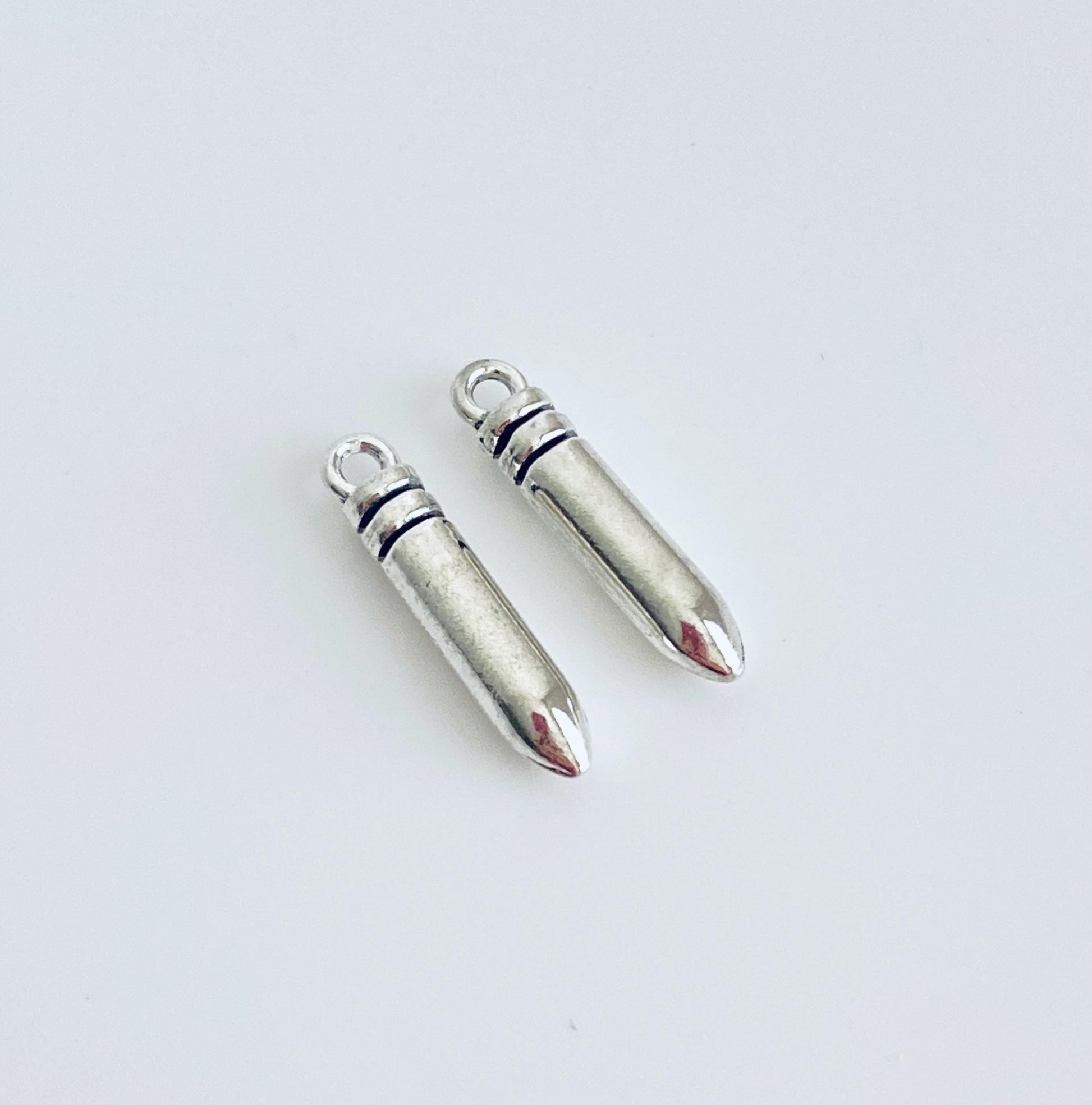 Ideal for modern, edgy, military-inspired, or statement jewelry, this bullet charm pairs easily with other charms, chains, and pendants. Its compact size makes it versatile for custom jewelry designs, handmade accessories, and creative craft projects.