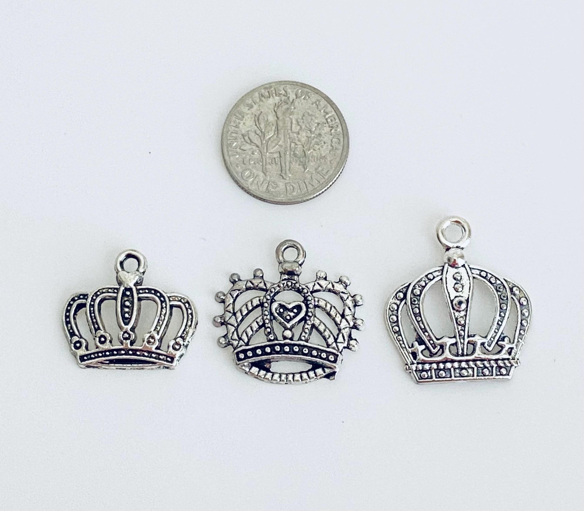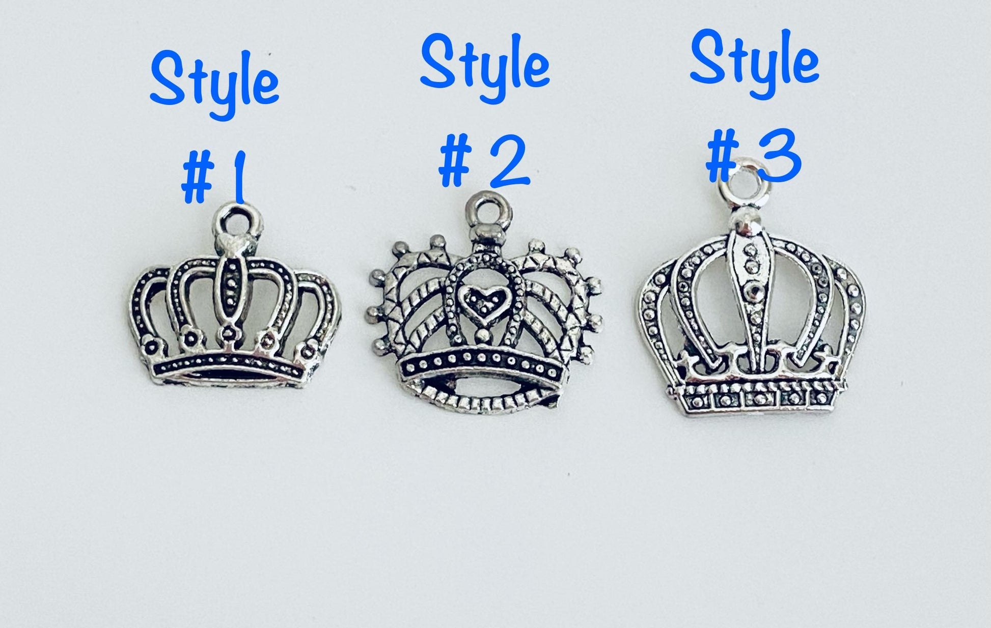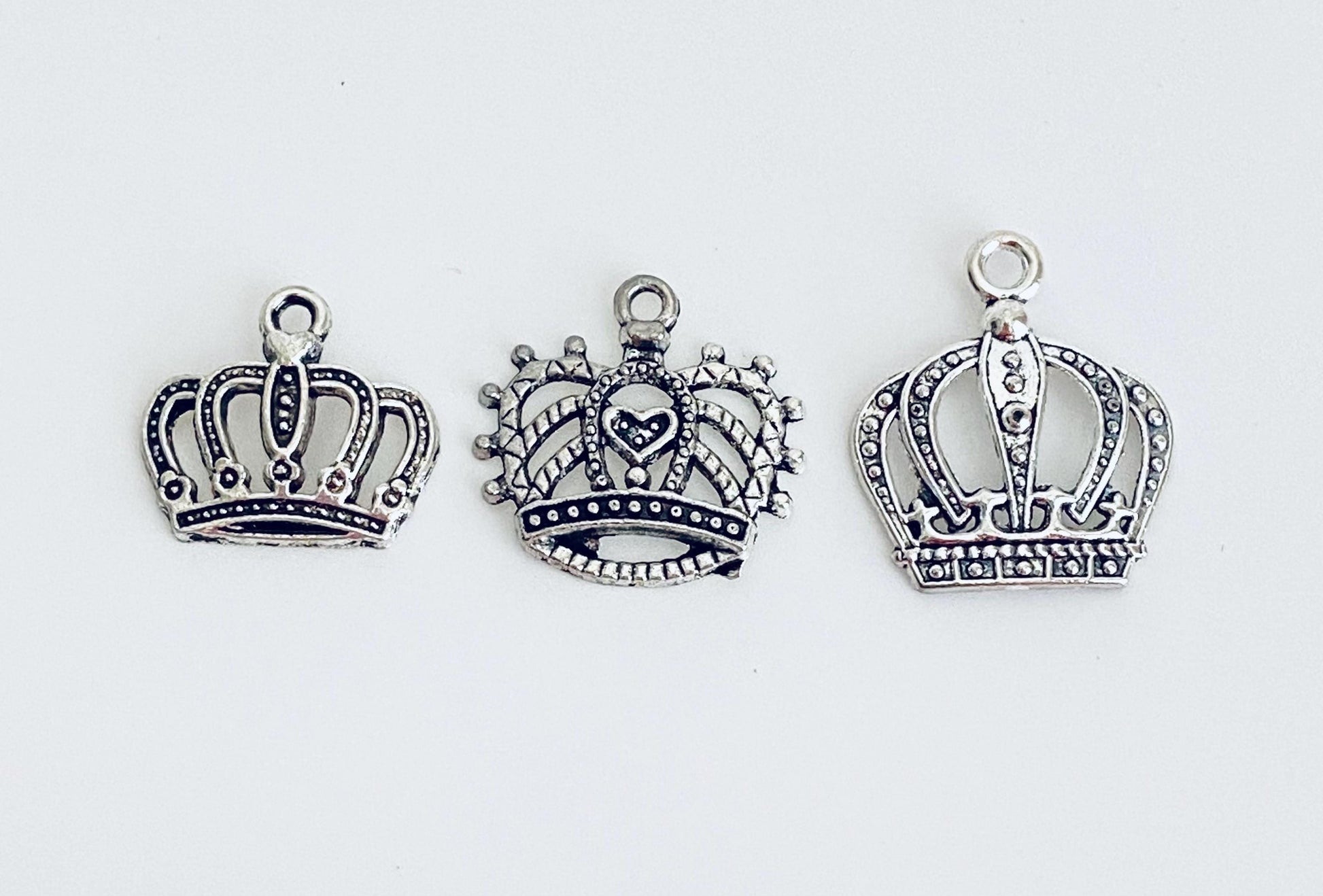 Add a regal touch to your jewelry designs with this base metal crown charm. Crafted from durable base metal, this crown-shaped charm is perfect for bracelets, necklaces, keychains, and DIY jewelry projects. Its elegant royal design makes it ideal for handmade jewelry, princess-themed accessories, and custom charm creations.