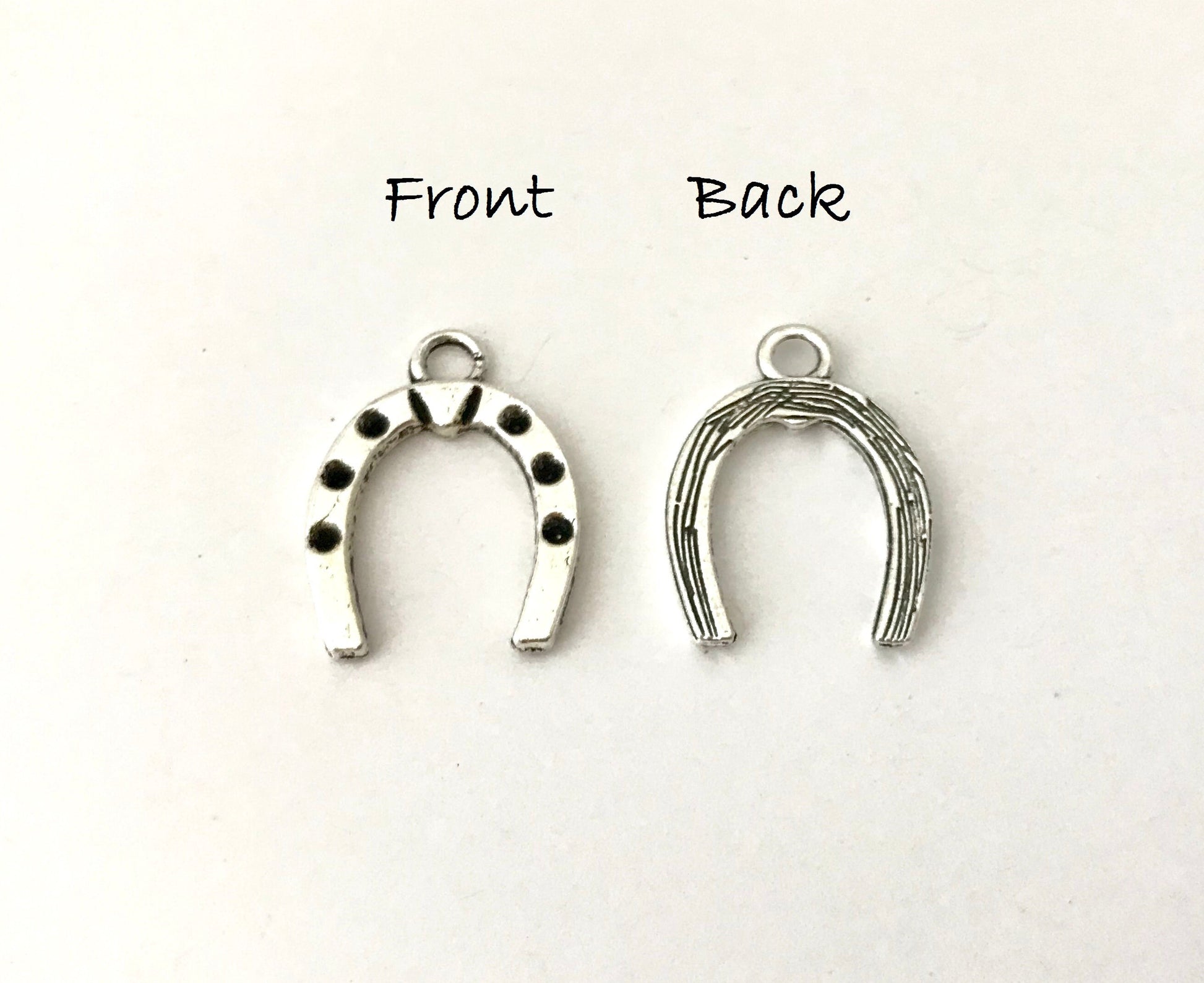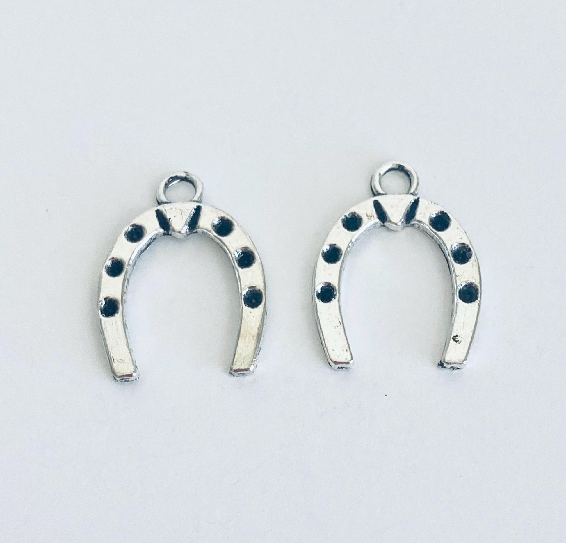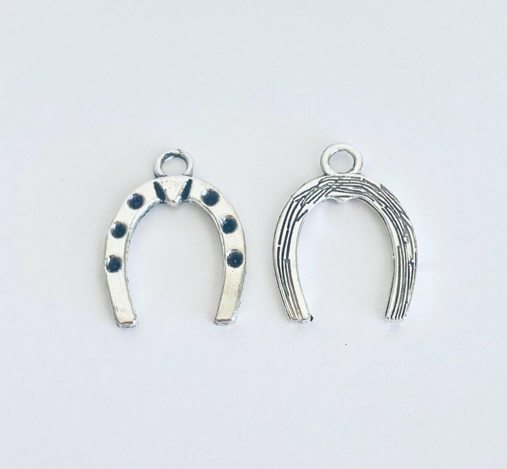 This base metal horseshoe charm features a classic lucky horseshoe design, perfect for adding symbolic meaning to your jewelry creations. This charm is ideal for necklaces, bracelets, earrings, keychains, and DIY craft projects. The timeless horseshoe shape represents luck, protection, and good fortune, making it a meaningful accent for both everyday jewelry and special gifts.