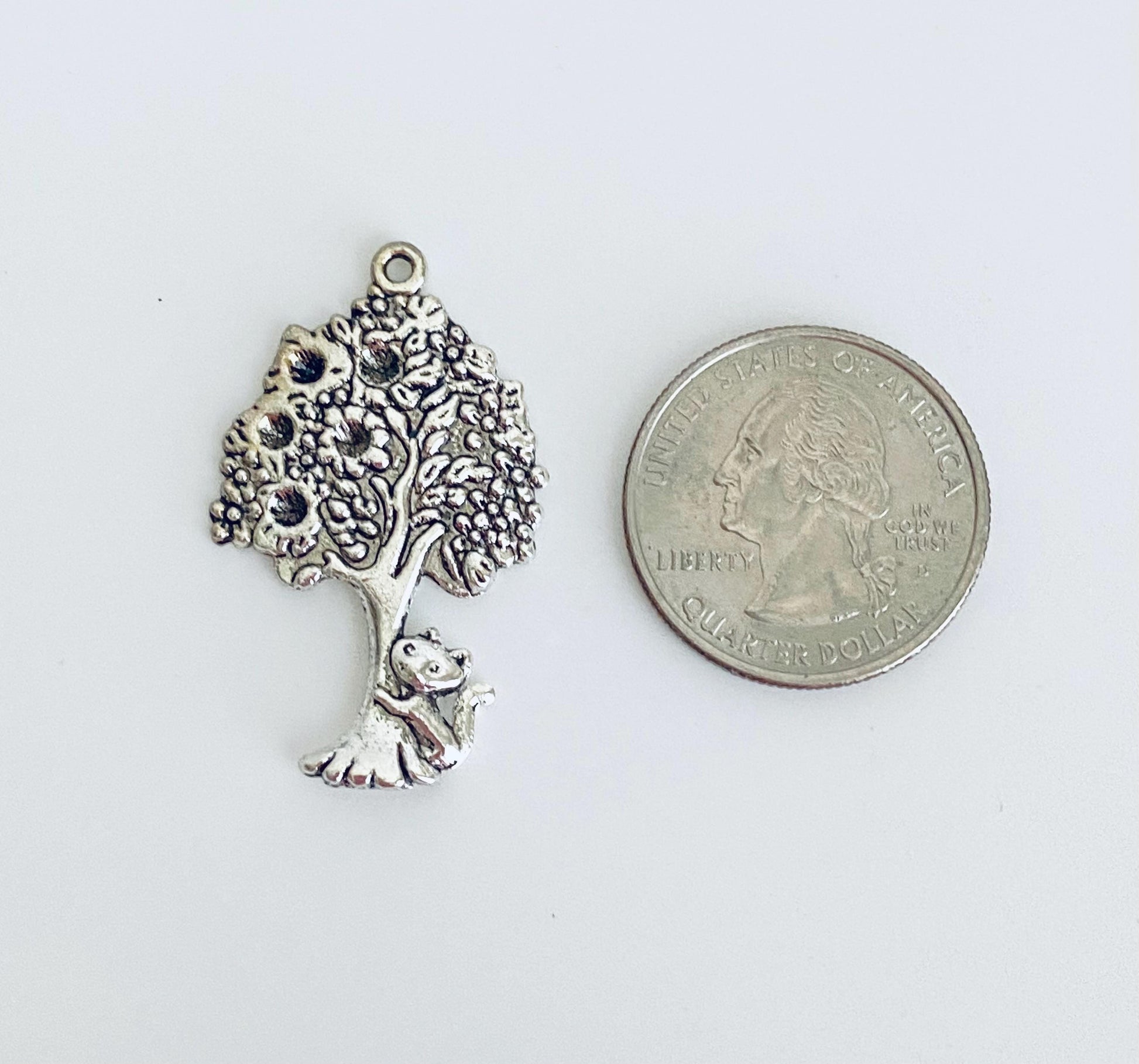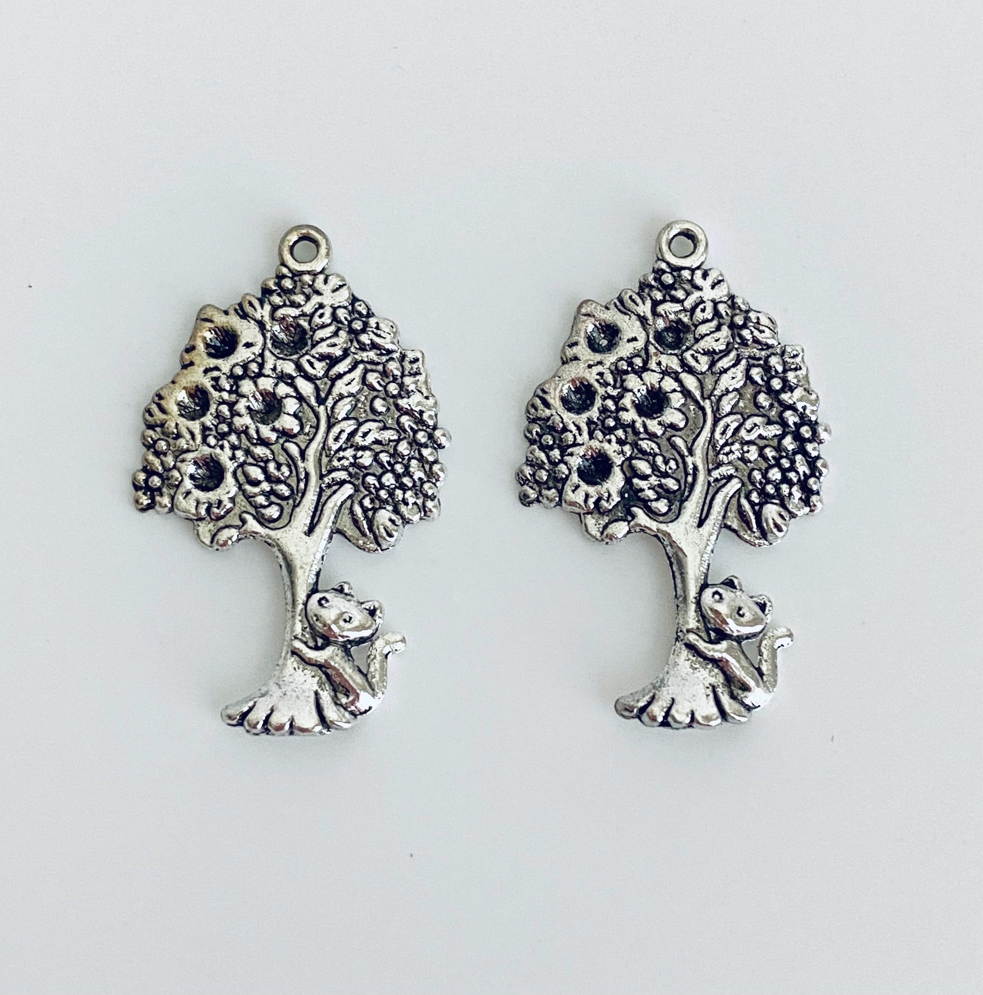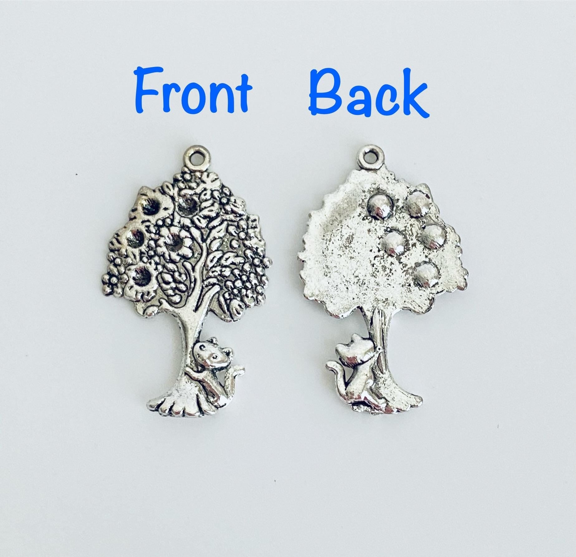 Add a whimsical and nature-inspired touch to your jewelry designs with this base metal large tree with cat charm. Featuring a detailed tree and cat design, this charm is perfect for bracelets, necklaces, keychains, and DIY crafts. Ideal for cat lovers and nature-themed jewelry.