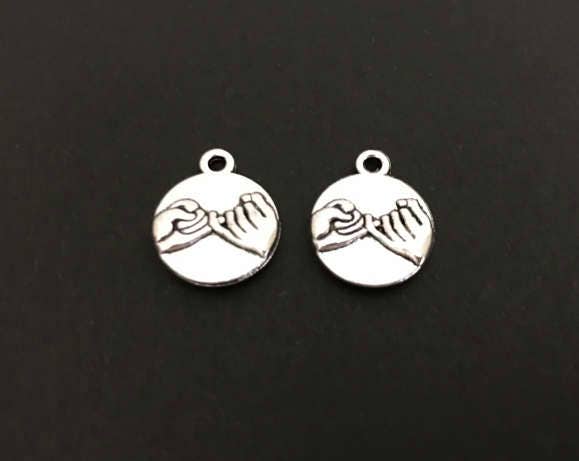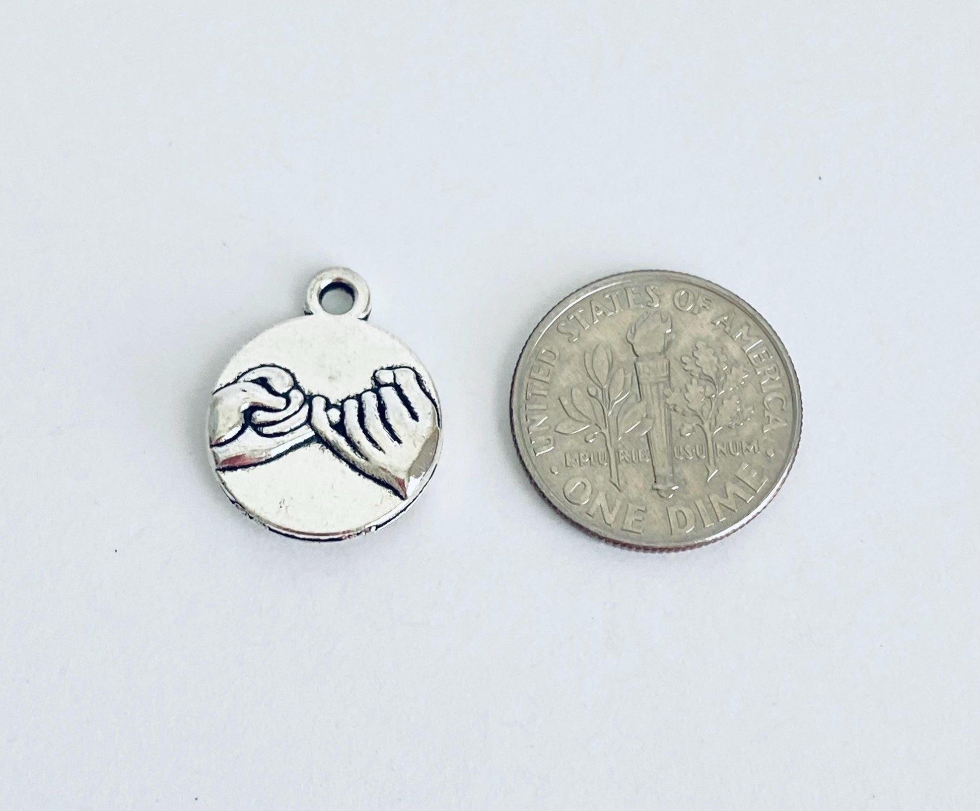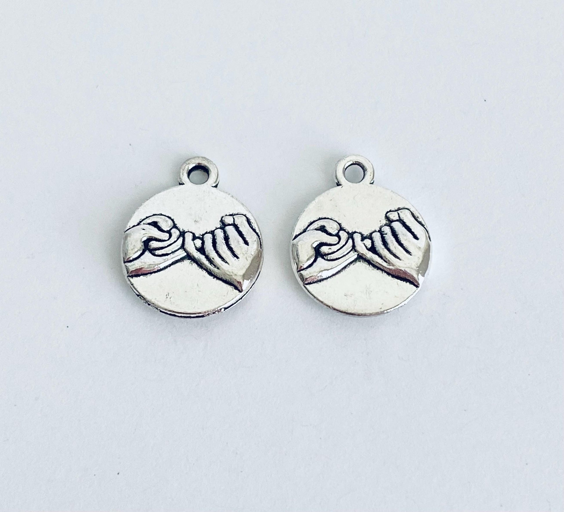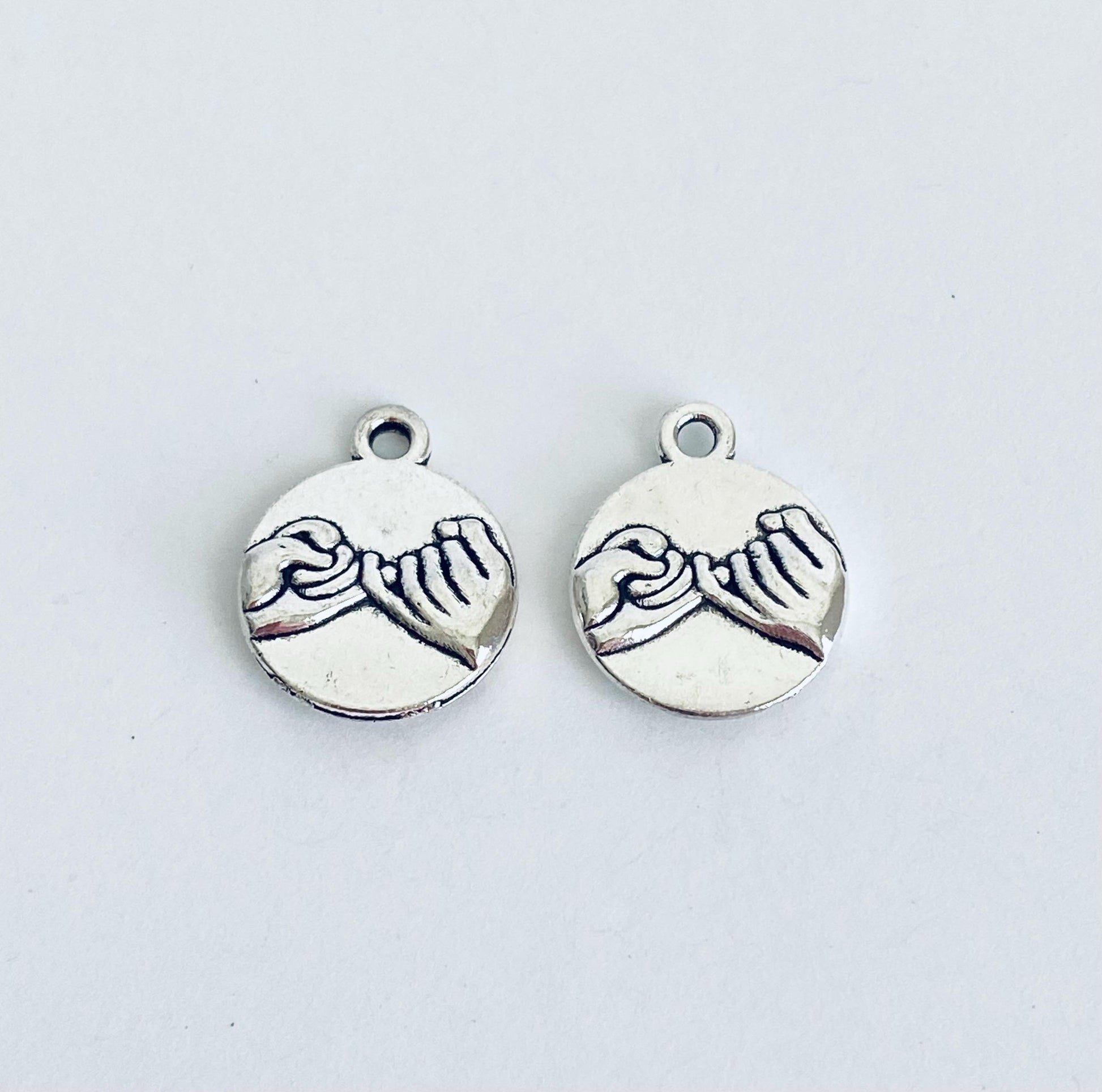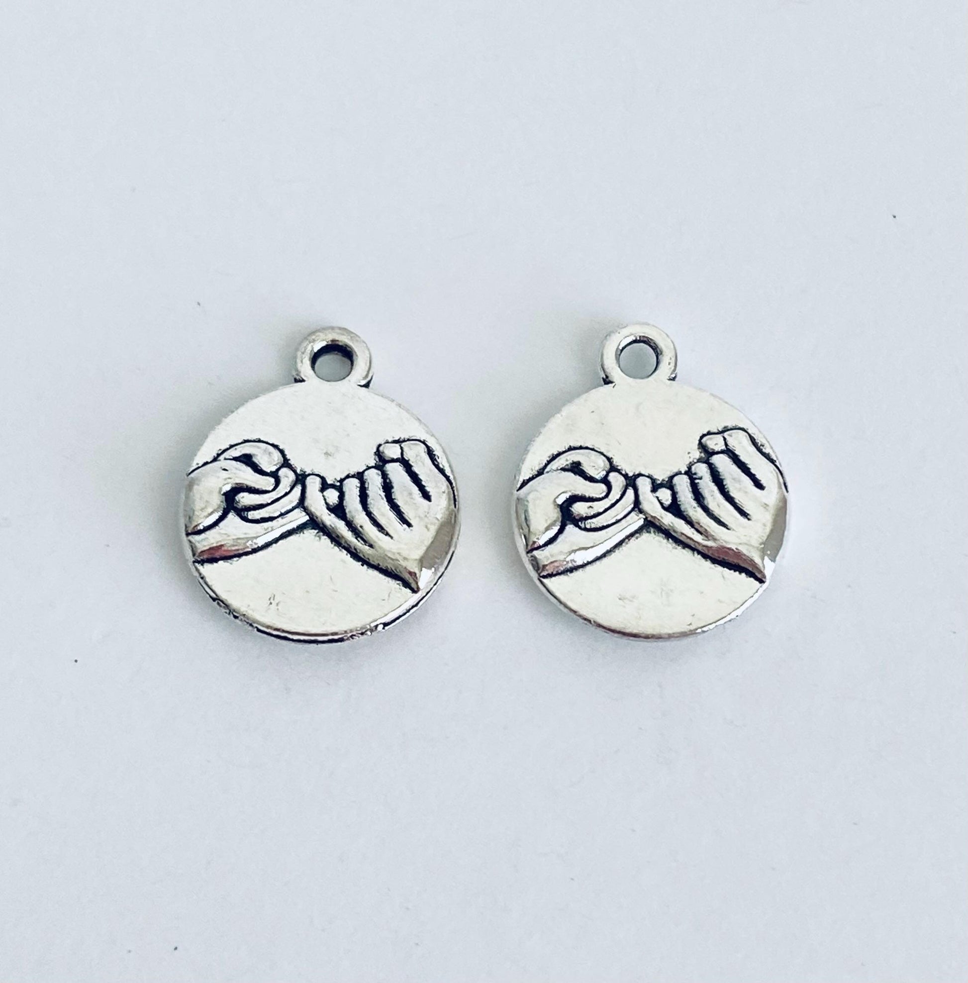 This base metal pinky swear charm features a pinky promise design, perfect for friendship jewelry and meaningful DIY creations. Ideal for necklaces, bracelets, earrings, and charm projects.