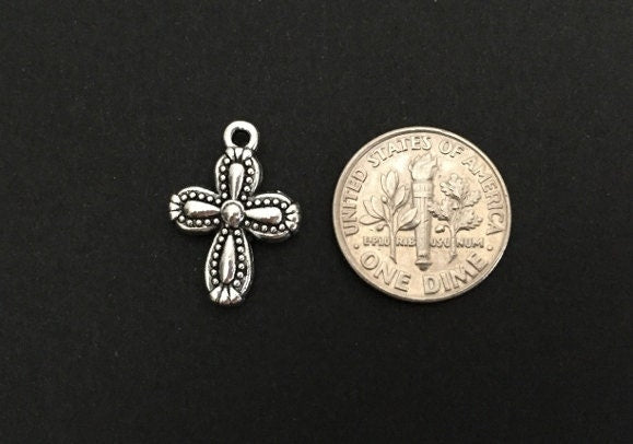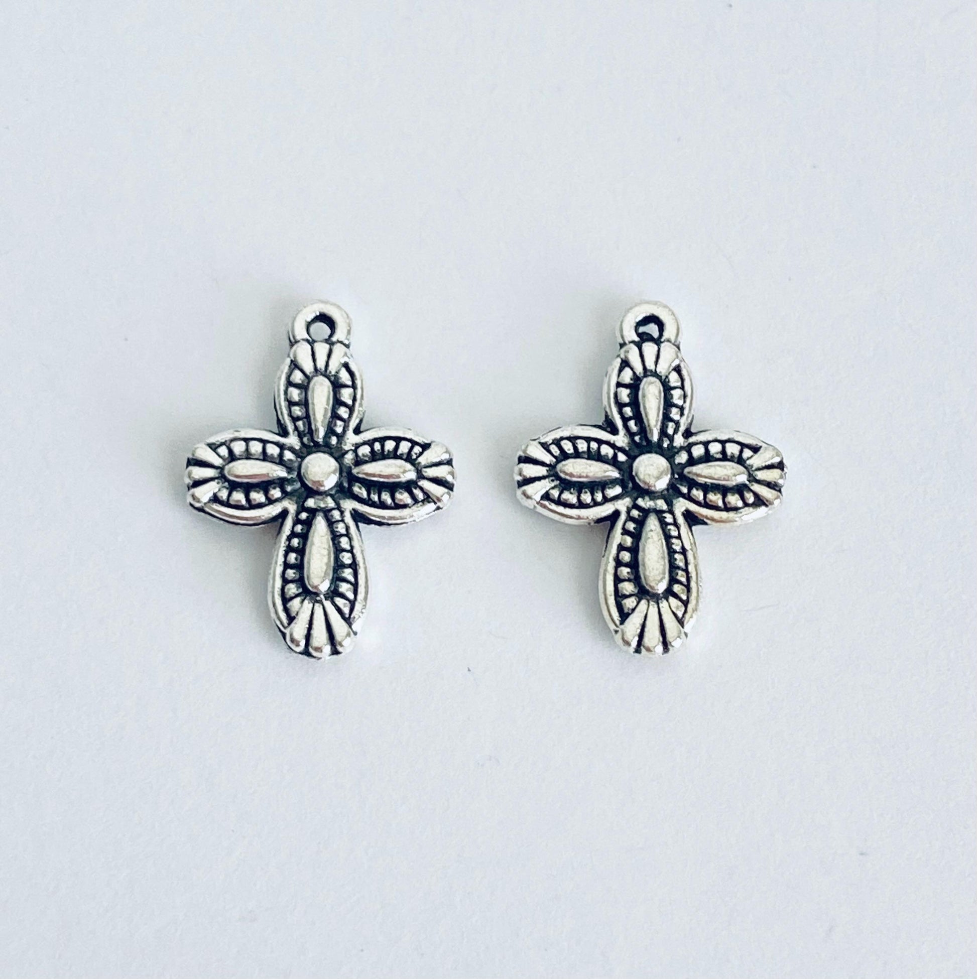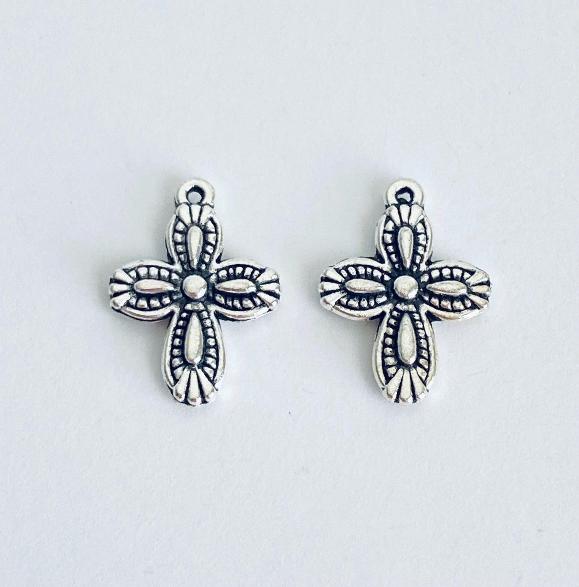 This base metal floral cross charm features intricate flower detailing, perfect for jewelry making, crafting, or personalized gifts. Ideal for necklaces, bracelets, keychains, and DIY projects, it’s lightweight, durable, and stylish.