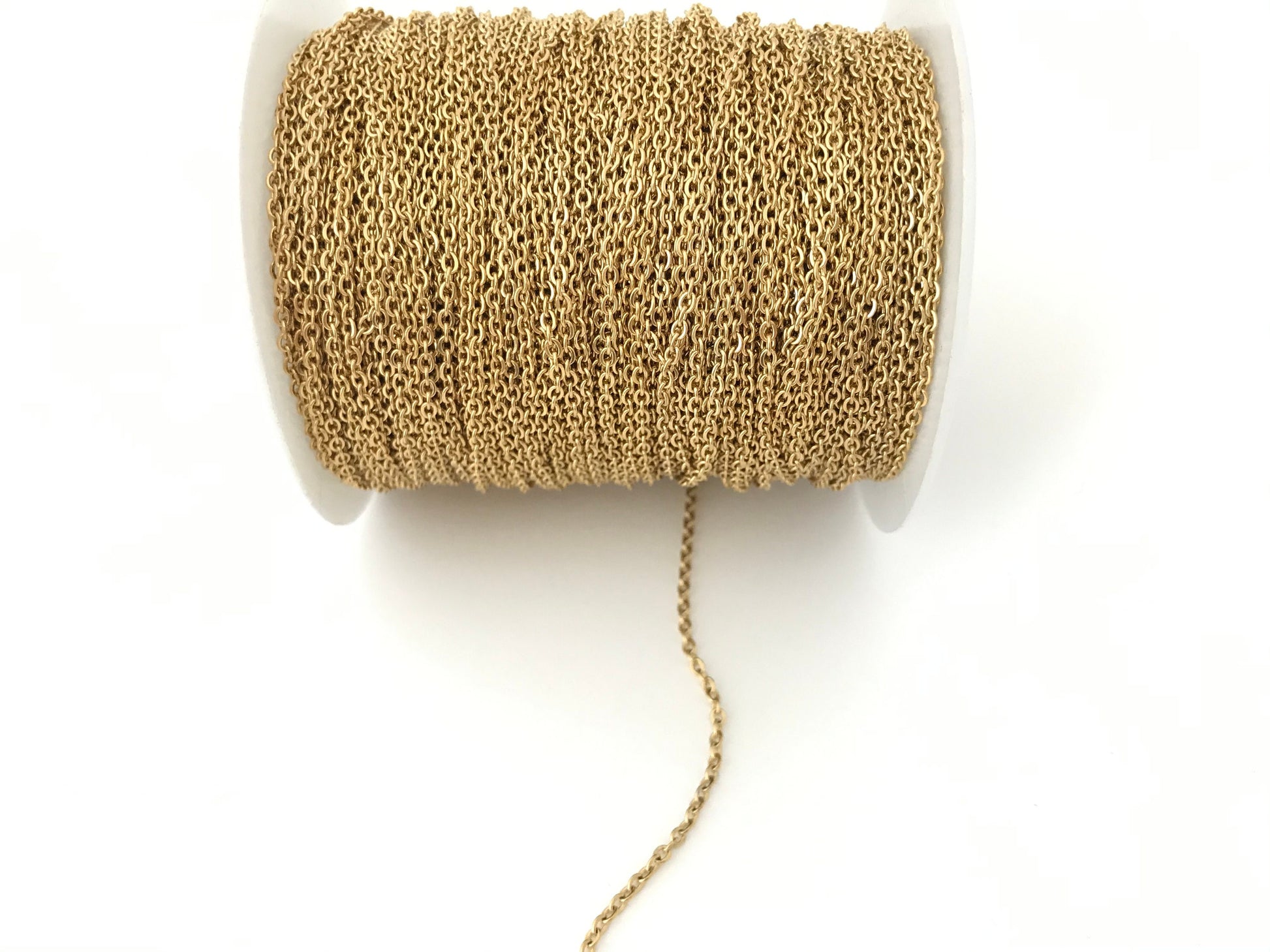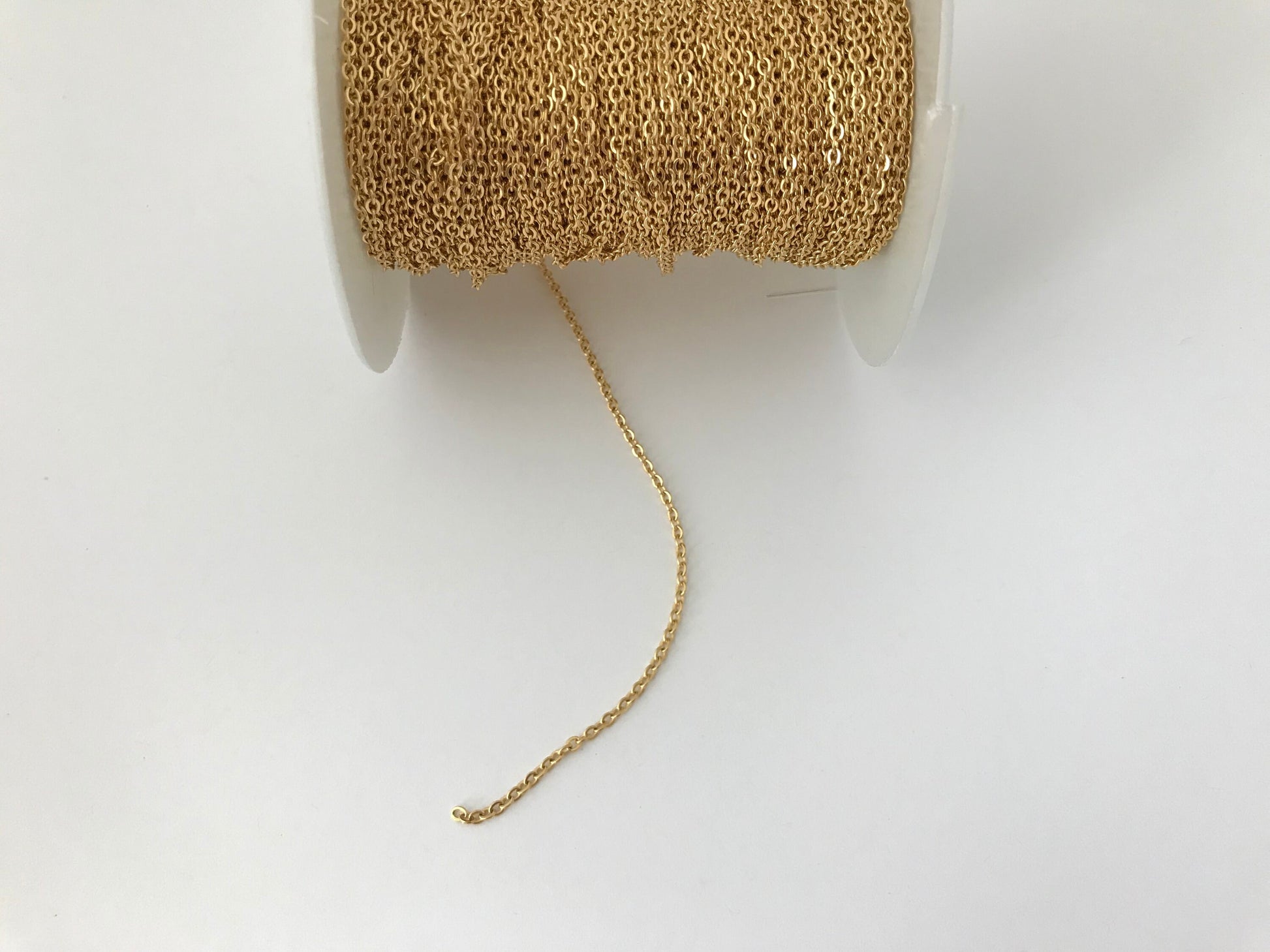 This 2mm gold over stainless steel chain is perfect for jewelry making, necklaces, bracelets, and DIY projects. Featuring a sleek gold finish over durable stainless steel, it’s rust-resistant, strong, and ideal for everyday wear or custom jewelry designs.
