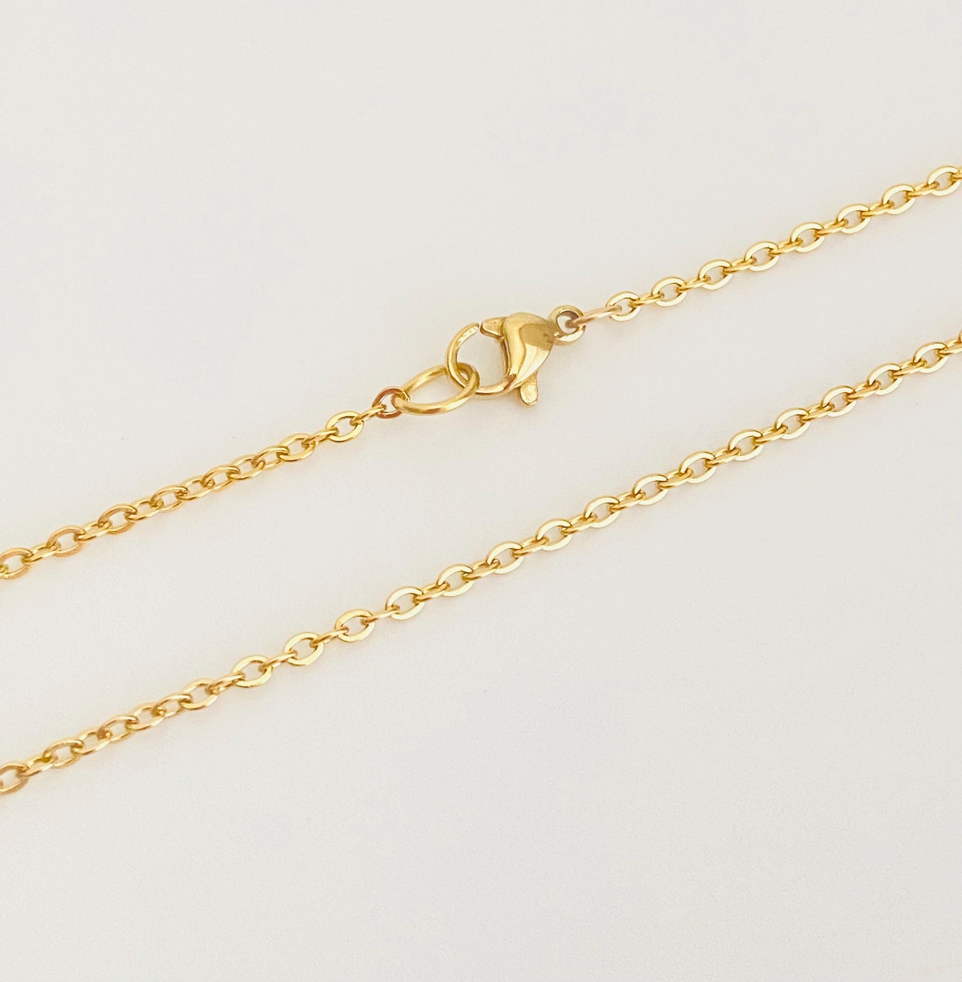 Sleek and modern, this gold over stainless steel flat cable chain necklace is durable, tarnish-resistant, and perfect for everyday wear or layering. Ideal for pendants, charms, and custom jewelry designs.