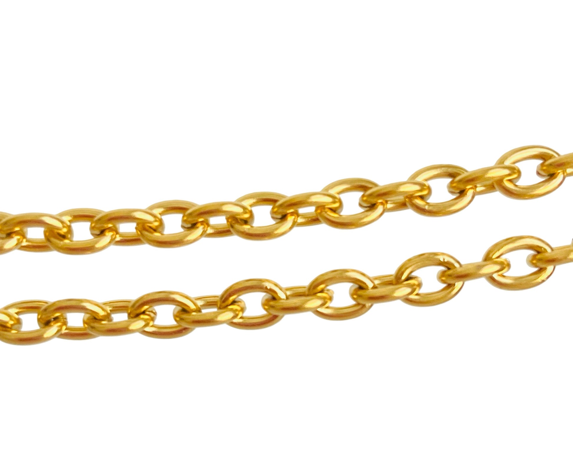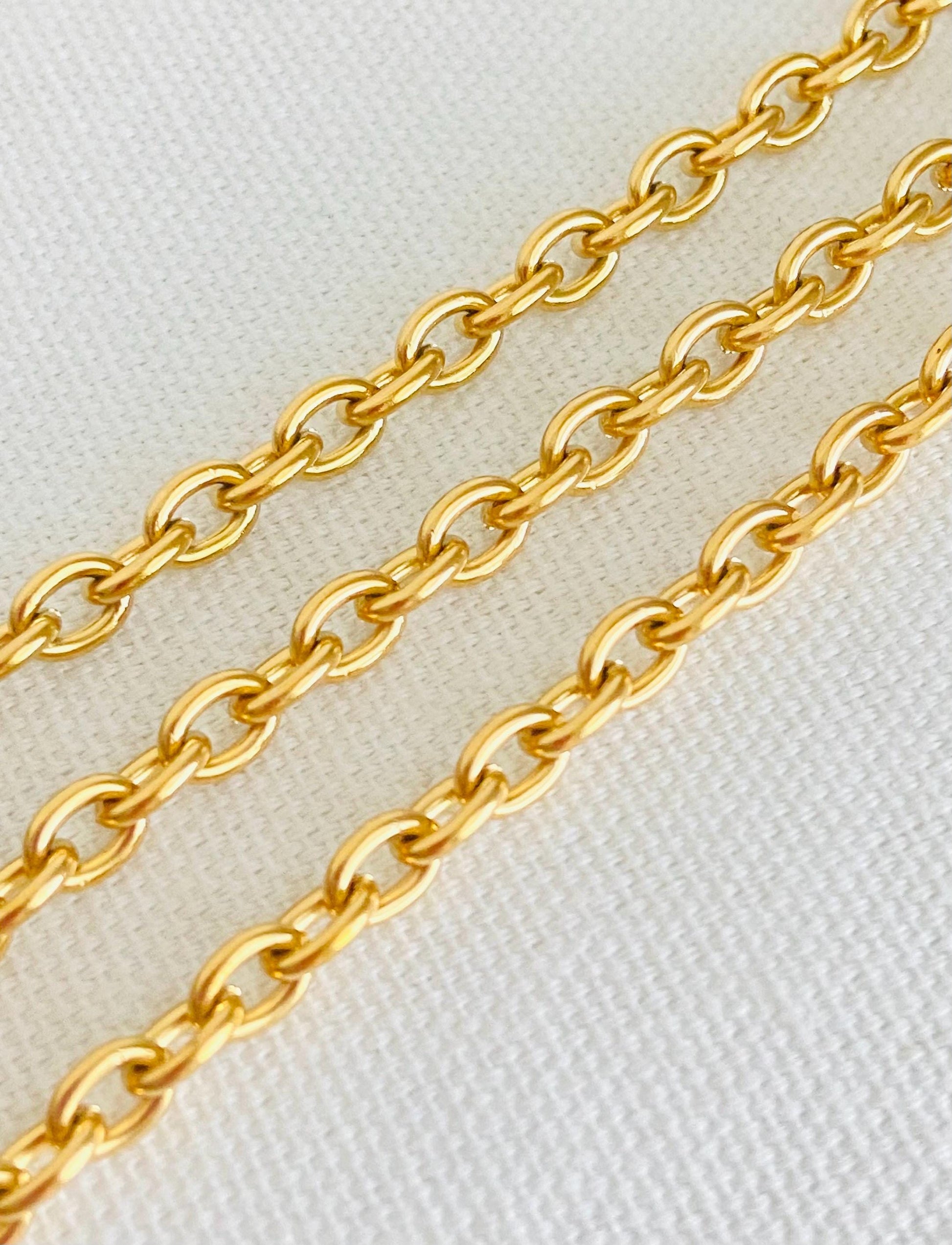 This small gold over stainless steel oval chain is perfect for necklaces, bracelets, and DIY jewelry projects. Featuring a polished gold finish over durable stainless steel, it’s rust-resistant, lightweight, and ideal for elegant everyday jewelry designs.