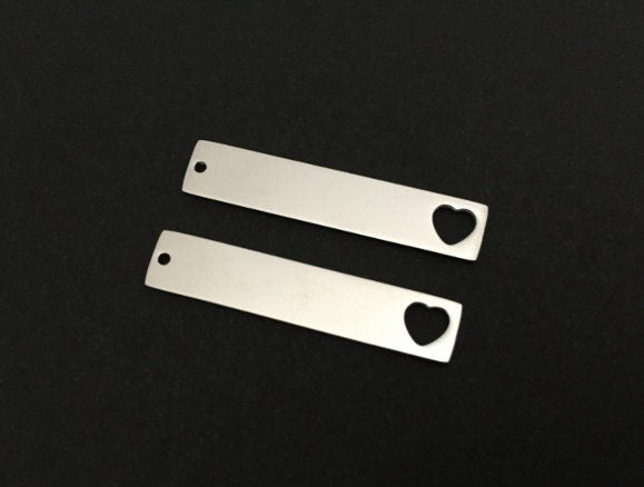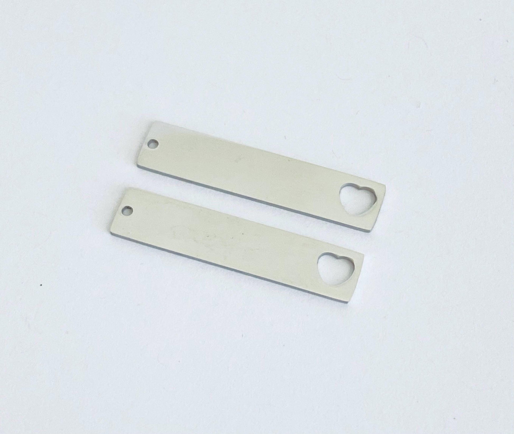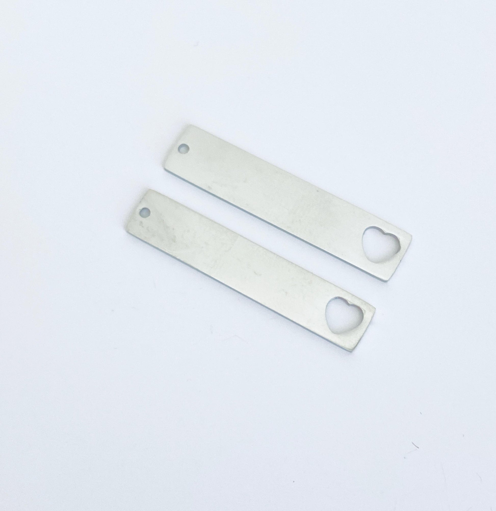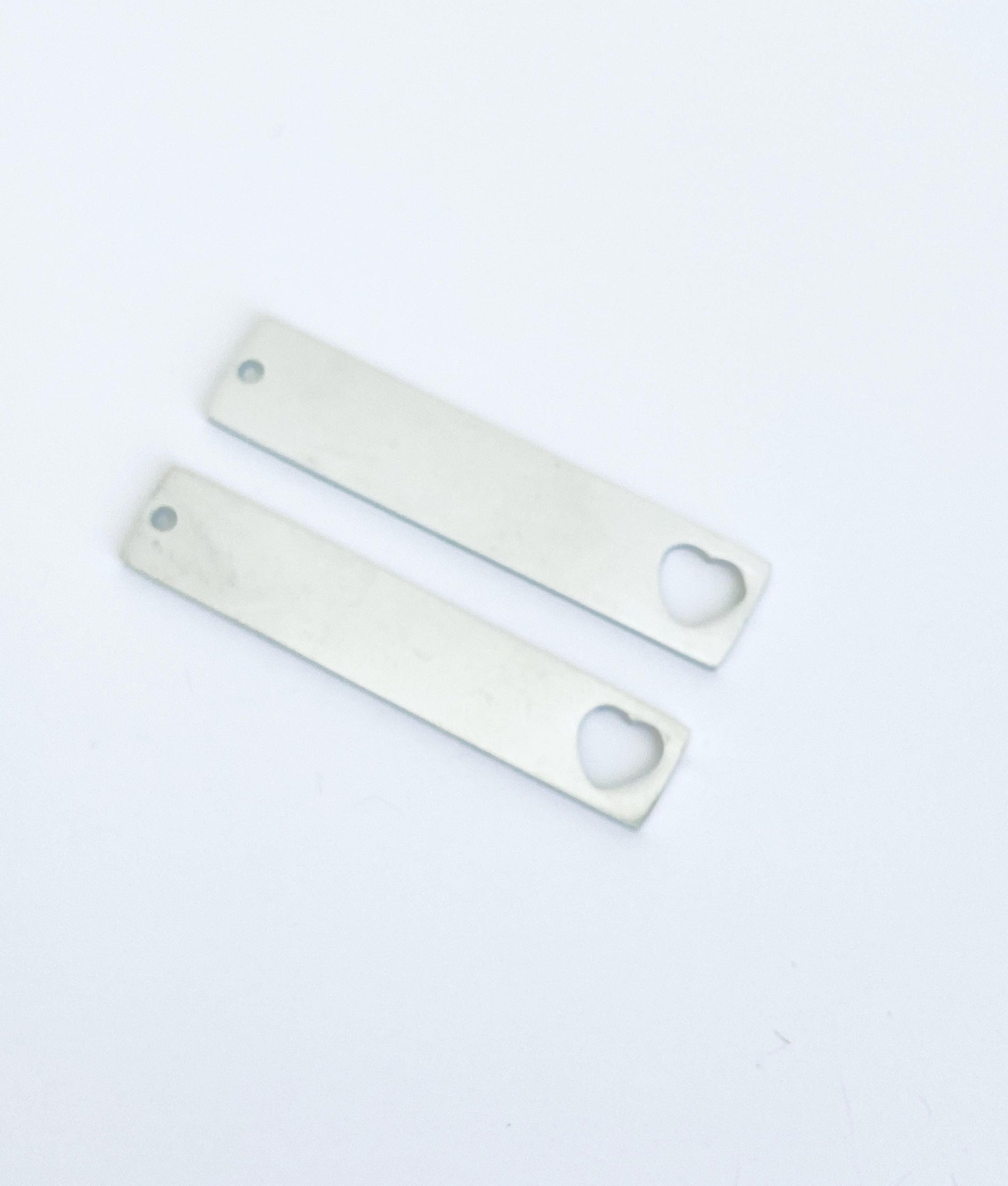 This small stainless steel long bar features a delicate cutout heart, perfect for engraving and personalized jewelry. Ideal for name bars, necklaces, pendants, or DIY projects, it’s durable, rust-resistant, and stylish for gifting or everyday wear.