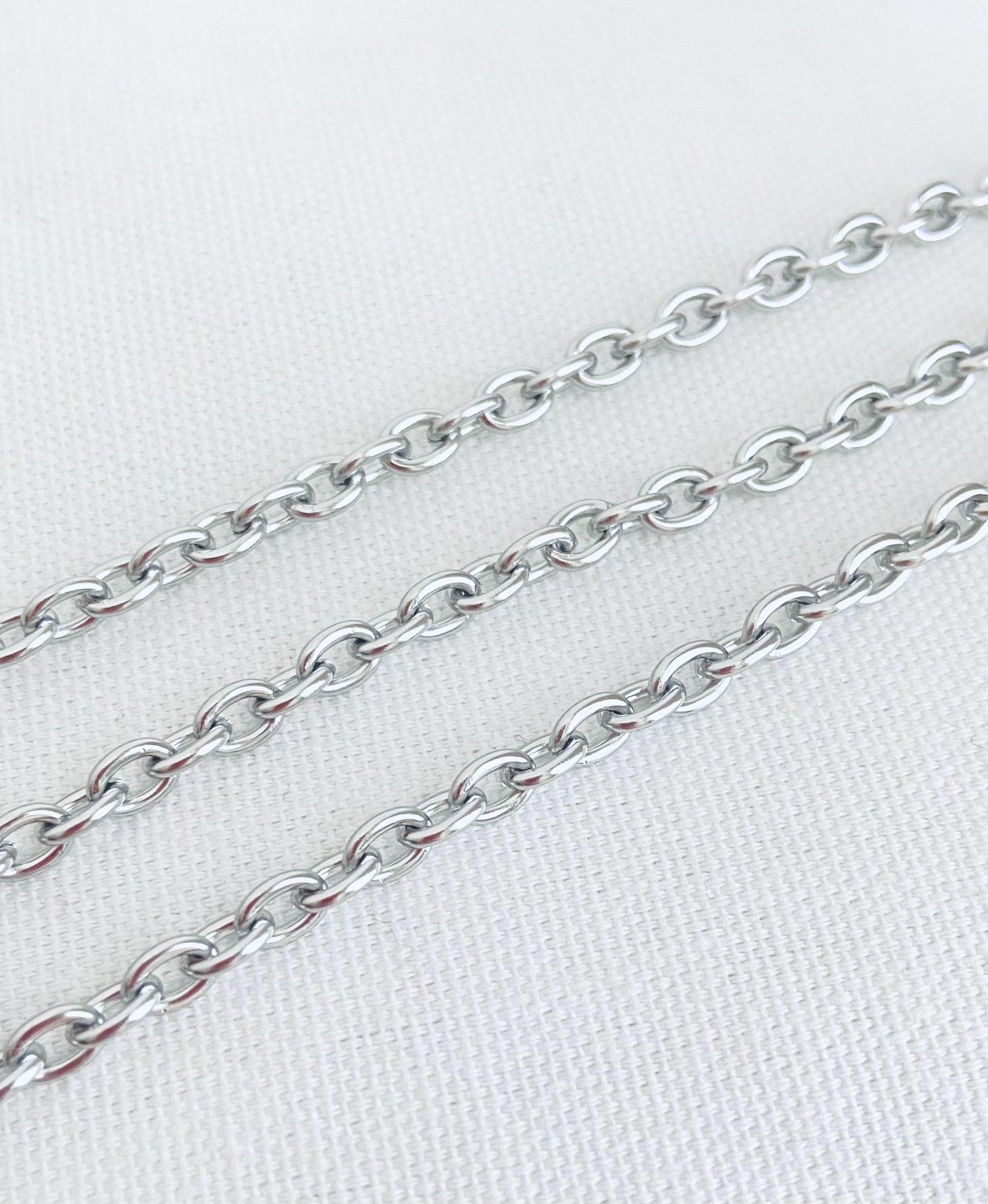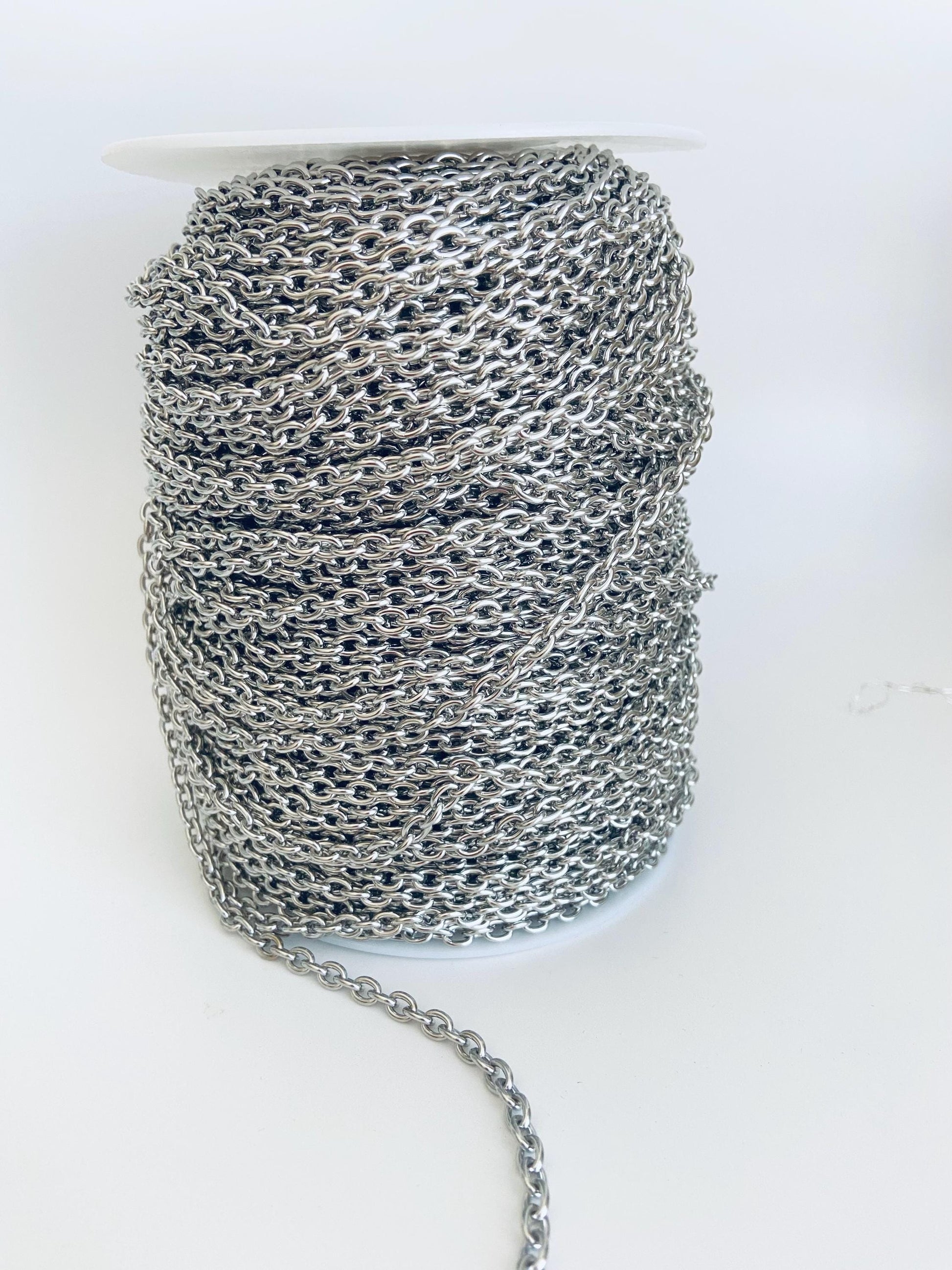 Create beautiful, personalized jewelry with this small stainless steel oval chain. Perfect for DIY jewelry projects, this durable, tarnish-resistant chain is ideal for necklaces, bracelets, anklets, and charm designs. Its small oval links make it easy to attach pendants, charms, and clasps, providing a polished, professional look for every piece.
