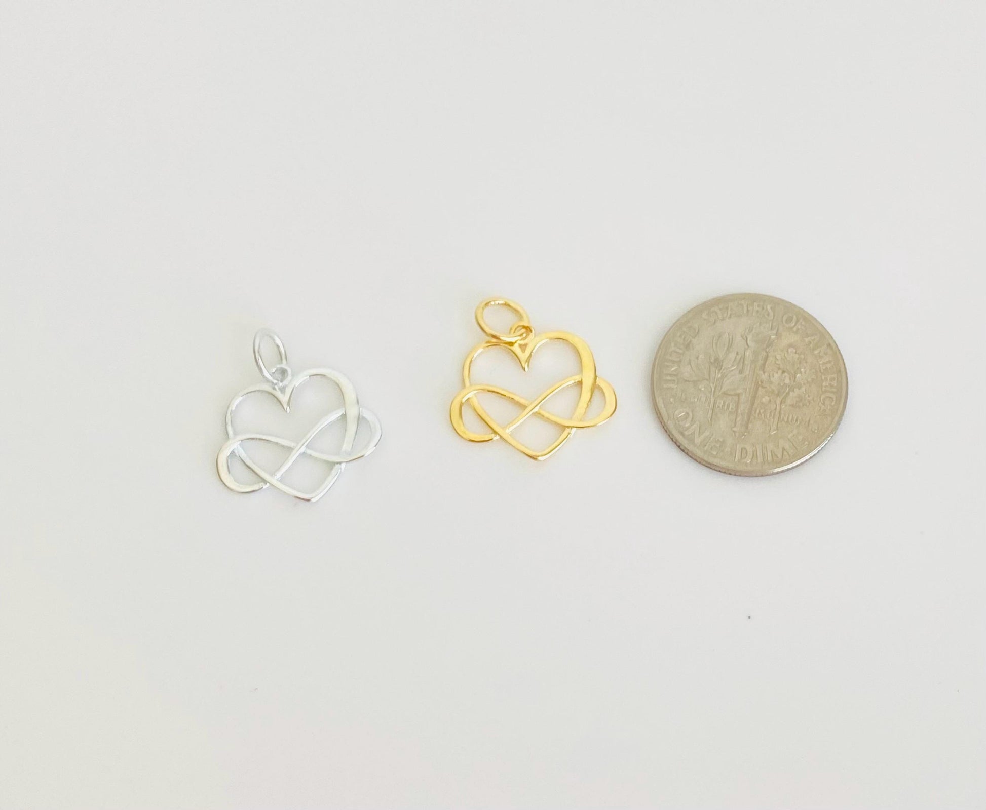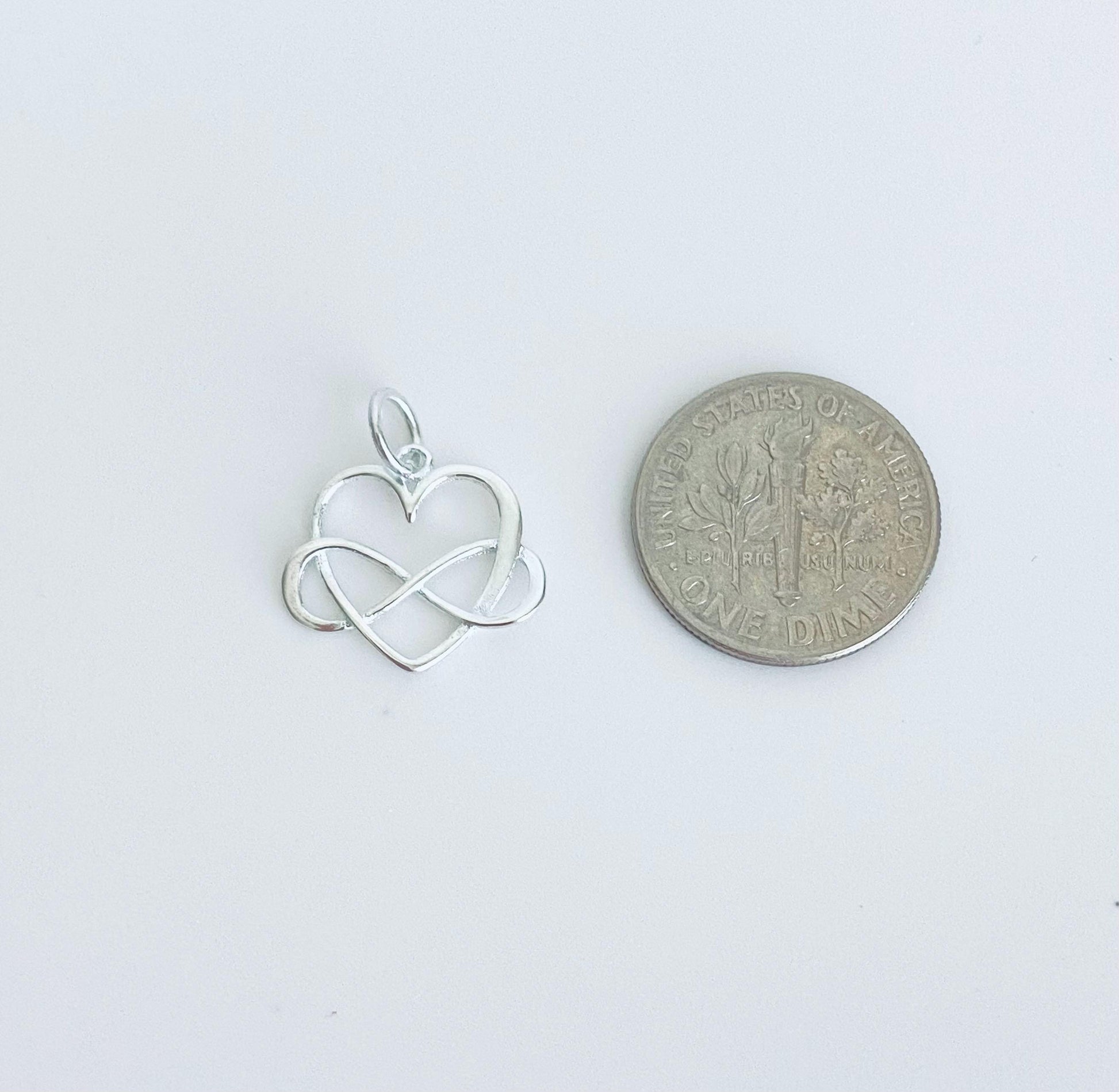 Celebrate love and eternity with this sterling silver heart infinity charm. Made from genuine 925 sterling silver, it features a graceful heart and infinity design, perfect for bracelets, necklaces, and meaningful custom jewelry creations.
